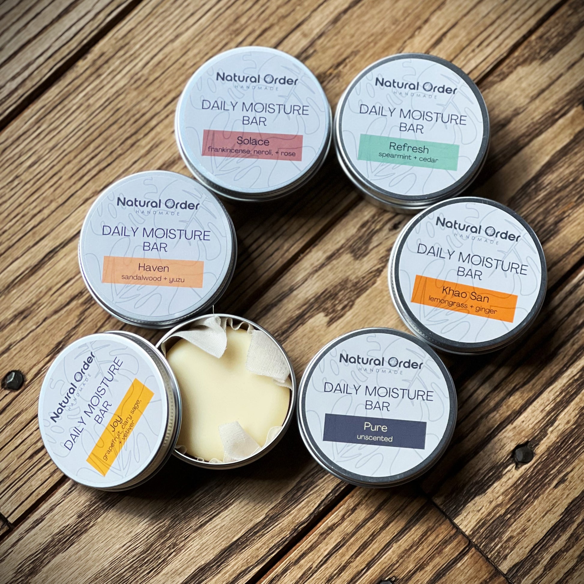 Our Daily Moisture Bars are the perfect way to treat yourself to luxurious, eco-friendly hydration! With a light, never-overbearing scent thanks to luxurious essential oils, they make the perfect addition to any self-care routine. Plus, they're free of harsh chemicals, so you can use them with confidence knowing that they are gentle and safe for all skin types.